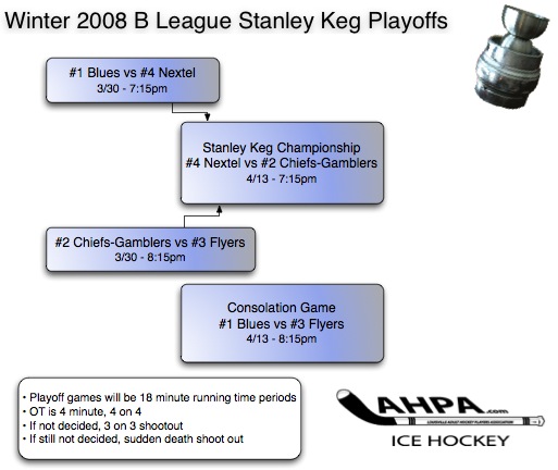 Spring 2008 Playoffs will be a simple round robin since there are only three teams.